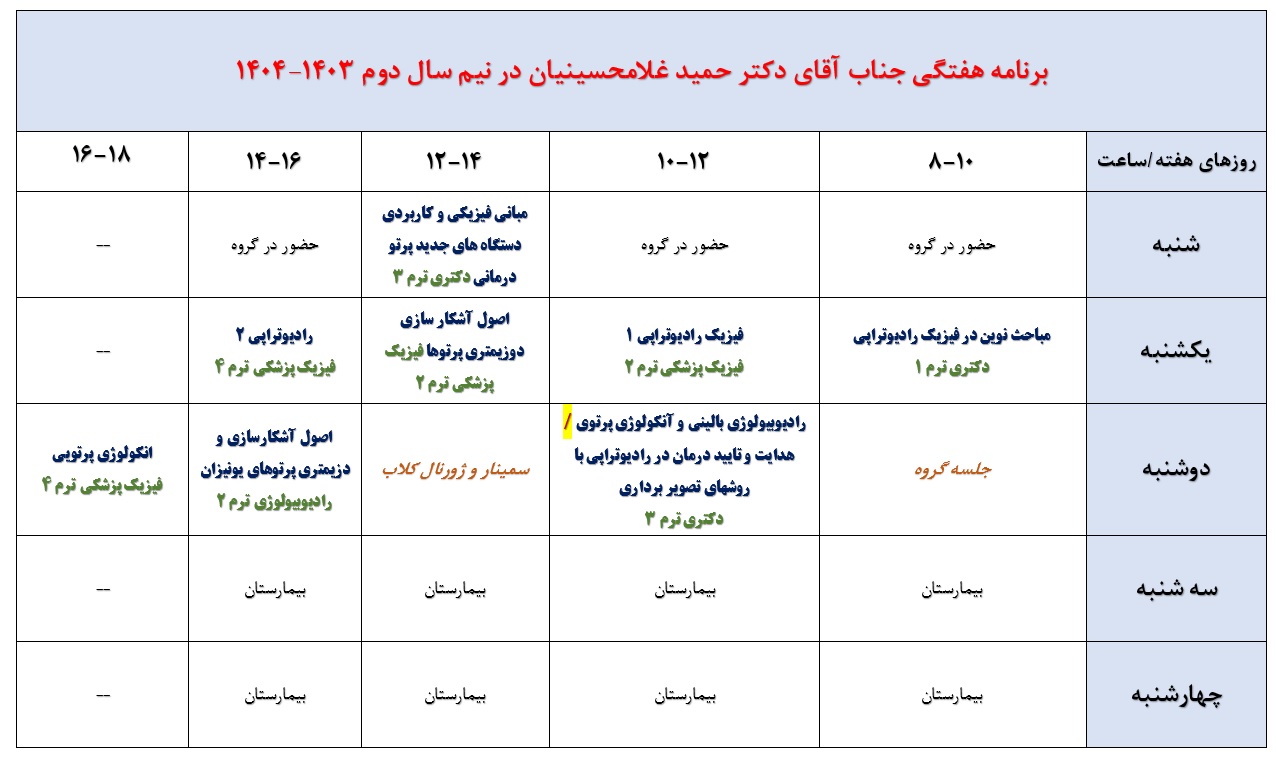 - سمت: عضو هيأت علمي گروه فيزيک پزشکي